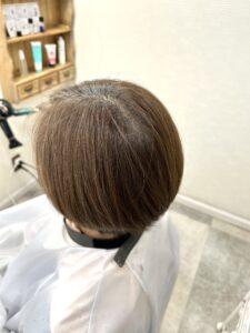 根元は白髪ぼかしでなく白髪活かしカラーで染めます